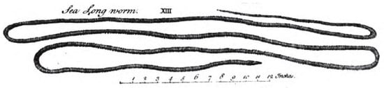 The “Sea long worm”, an early depiction of what is likely Lineus sp. Reproduced from [29], 1758, Oxford.
