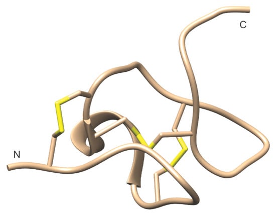 NMR structure of nemertide alpha-1 (RCSB id: 6ENA) [120].