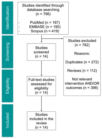 The search strategy retrieved a total of 796 articles. After title and abstract evaluation, 14 articles were included for full-text review. From the selected articles, 10 were experimental studies using animal models (mice, rats and rabbits) and 4 were reports from human studies: one clinical case-report, two retrospective studies and one clinical trial. The selection process is shown in Figure 1, and the descriptive summary of the articles that met the inclusion criteria in Table 1.