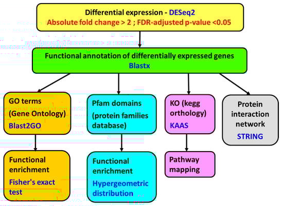 Scheme of the methods employed for differential gene expression analysis, functional annotation, and functional enrichment.