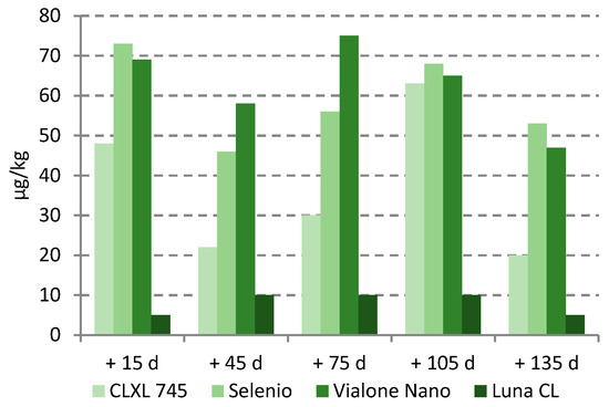 STC increased from post-flowering to ripening, remaining constant or slightly decreasing in samples collected 15 days after ripening. The contamination by STC ranged from 0.16 to 8.34 µg kg−1; rice variety influenced the level of contamination. At ripening, mean STC contamination was lower than 1 µg kg−1 in 4 rice samples (all round grain varieties), while it was higher than 2 µg kg−1 in other 4 (3 long B grain and 1 round grain varieties)., Mare CL (long B grain) and Sole CL (round grain) variety showed a significant higher contamination respect to other varieties, both at ripening and at post-ripening (p = 0.01). High values were also found in CL26 and CL XL 745 varieties. Contamination of the three common varieties cultivated in two fields showed slightly different results. Terra CL and Centauro varieties showed low and similar STC contamination in both experimental fields, while Selenio had not always consistent results in considered fields; a justification of this trend could be the heterogeneity of the STC contamination. As for fungal contamination, no significant difference was observed between the sowing densities. The occurrence of STC in rice has already been reported; in particular, recent surveys [12,13] showed a widespread STC contamination in paddy rice and derived products. STC has generally been considered a storage mycotoxin [22]; however, the data reported in this study showed that STC already occurred in field at not negligible levels and that the contamination can be strongly influenced by the rice varieties. In 2013, the European Food Safety Authority (EFSA) published a scientific opinion stating that STC in grains and grain-based products could lead to an exposure in the range 1.5–8 µg/kg that can be considered of low health concern. However, no exposure data were available and a risk characterization was not possible for this mycotoxin [23]. A more recent review published in 2018, reporting recent toxicological studies, showed that STC should be taken into account for its ability to have a significant impact on human and animal health [24].