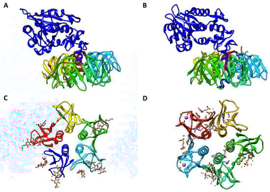 Crystal Structure of Shiga toxins. A. Shiga toxin subtype 1a holotoxin (PDB #1DM0). B. Shiga toxin subtype 2a holotoxin (PDB # 1R4P). C. Shiga toxin subtype 1a B-subunits depicted with potential Gb3 receptor interactions (PDB #1BOS). D. Shiga toxin subtype 2a B-subunits depicted with potential Gb3 receptor interactions (PDB #1R4P, deletion of A-subunit). Toxin A-subunits are shown in dark blue in panels A and B. Individual B-subunits are shown in different colors in all panels. PDB files of all structures were obtained from RCSB PDB (www.rcsb.org) and compile PDB files with Chimera 1.10.2 (UCSF Chimera, www.cgl.ucsf.edu/chimera). Reproduced from reference [25]. 2016, MDPI.