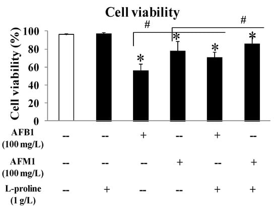2.1. l-Proline Alleviates the Decreased Viability of HEK 293 cells Caused by AFB1 and AFM1