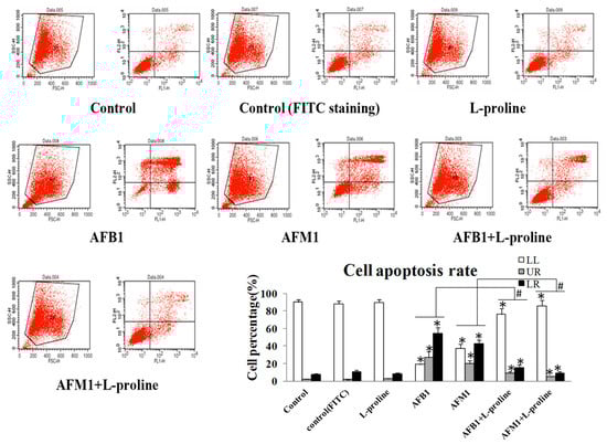 2.2. l-Proline Decreases Apoptosis Rate of HEK 293 Cells Induced by AFB1 and AFM1