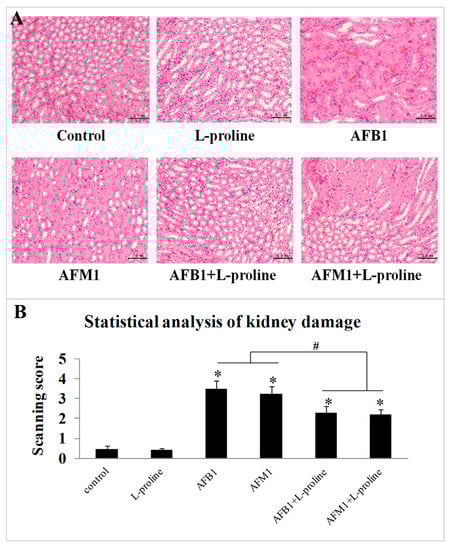 Li H, Li S, Yang H, Wang Y, Wang J, Zheng N. l-Proline Alleviates Kidney Injury Caused by AFB1 and AFM1 through Regulating Excessive Apoptosis of Kidney Cells. Toxins. 2019; 11(4):226. https://doi.org/10.3390/toxins11040226