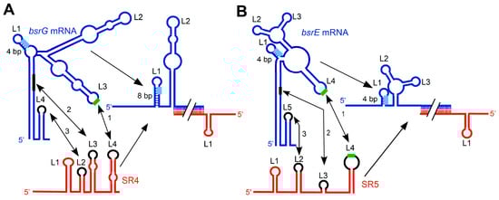 - Meißner, C.; Jahn, N.; Brantl, S. In vitro characterization of the type I toxin-antitoxin system bsrE/SR5 from Bacillus subtilis. J. Biol. Chem. 2016, 291, 560–571. [Google Scholar] [CrossRef] [PubMed]