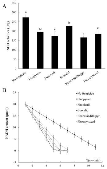 - Hervé, F.A.; Themis, J.M. Progress in understanding molecular mechanisms and evolution of resistance to succinate dehydrogenase inhibiting (SDHI) fungicides in phytopathogenic fungi. Crop Prot. 2010, 29, 643–651. [Google Scholar]