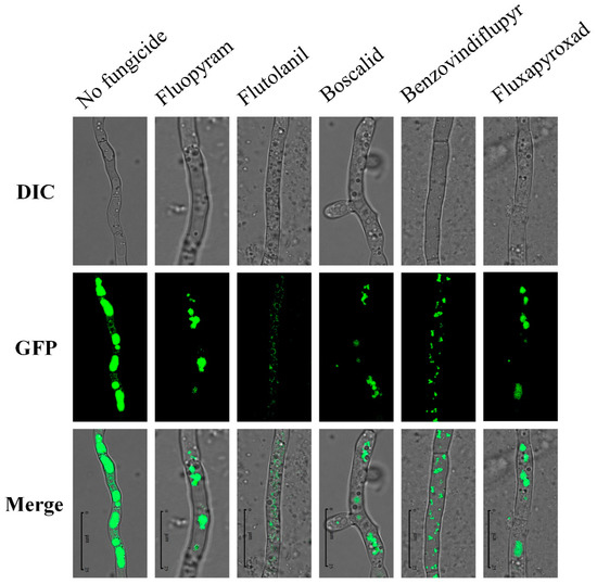 - Qiu, J.; Xu, J.; Yu, J.; Bi, C.; Chen, C.; Zhou, M. Localisation of the benzimidazole fungicide binding site of Gibberella zeae β2-tubulin studied by site-directed mutagenesis. Pest Manag. Sci. 2011, 67, 191–198. [Google Scholar] [CrossRef]