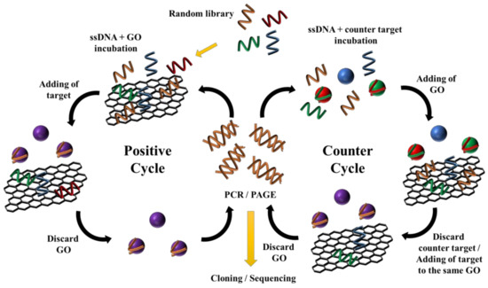 The procedure of GO-SELEX: positive SELEX (left) and counter SELEX (right).