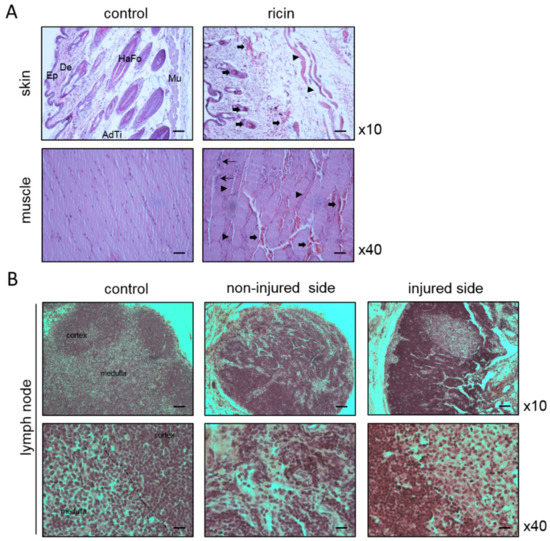 Sapoznikov A, Rosner A, Falach R, Gal Y, Aftalion M, Evgy Y, Israeli O, Sabo T, Kronman C. Intramuscular Ricin Poisoning of Mice Leads to Widespread Damage in the Heart, Spleen, and Bone Marrow. Toxins. 2019; 11(6):344. https://doi.org/10.3390/toxins11060344