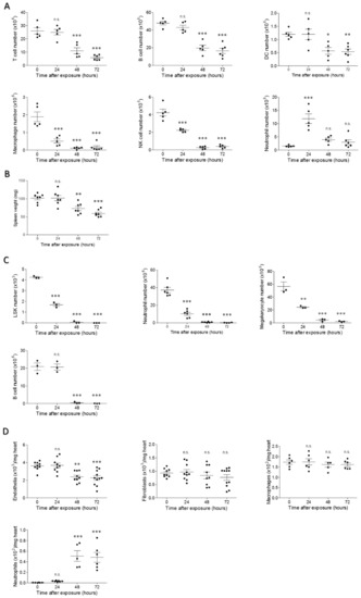 - Gal, Y.; Sapoznikov, A.; Falach, R.; Ehrlich, S.; Aftalion, M.; Kronman, C.; Sabo, T. Total Body Irradiation Mitigates Inflammation and Extends the Therapeutic Time Window for Anti-Ricin Antibody Treatment against Pulmonary Ricinosis in Mice. Toxins 2017, 9, 278. [Google Scholar] [CrossRef]