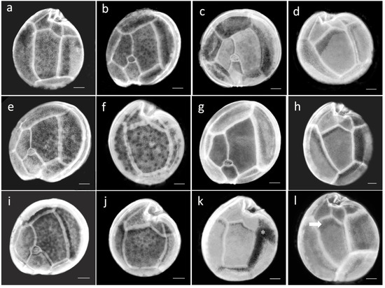 - Fritz, L.; Triemer, R.E. A rapid simple technique utilizing calcofluor white M2R for the visualization of dinoflagellate thecal plates. J. Phycol. 1985, 21, 662–664. [Google Scholar] [CrossRef]