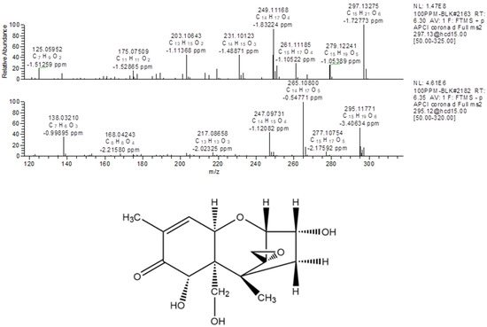 The MS/MS fragment ion information (±APCI) and structure of DON.