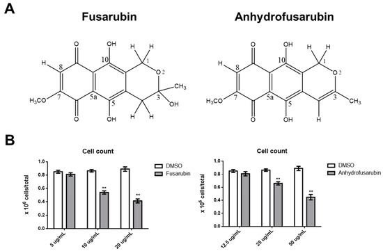 Cladosporium sp. and mammalian cells is important: (1) to avoid the putative toxicity of their metabolites; and (2) to identify novel bioactive compounds and dissect their mechanisms with the aim of developing new therapeutic approaches to cancer. Recently, two naphthoquinones, anhydrofusarubin (AFU) and the methyl ether fusarubin (FUS) were isolated from a