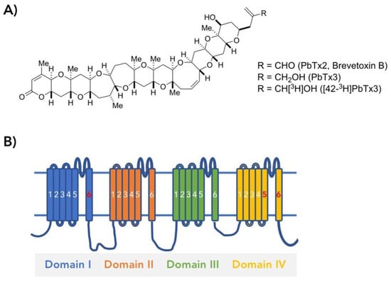 - Poli, M.A.; Mende, T.J.; Baden, D.G. Brevetoxins, unique activators of voltage-sensitive sodium channels, bind to specific sites in rat brain synaptosomes. Mol. Pharmacol. 1986, 30, 129–135. [Google Scholar] [PubMed]