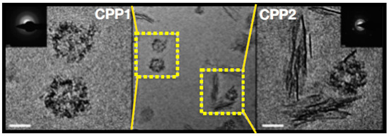 Calciprotein particles (CPP1, left) are spherical particles containing calcium and phosphate ions organized by fetuin-A are covered by fetuin-A, shielding the crystals from the surroundings. Secondary CPP (CPP2) are needle shaped configurations as a consequence of non-organized expanding crystallization as the consequence of either high concentrations of calcium and phosphate, relative deficiency of fetuin A, or otyher metabolic conditions that promote CPP formation, as detailed in the text. Reproduced with permission from Holt et al. 2016, Oxford University Press [20].