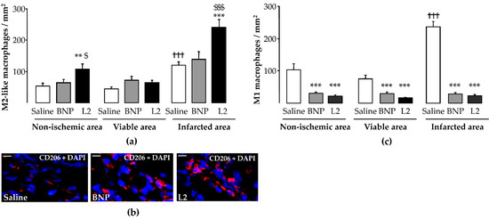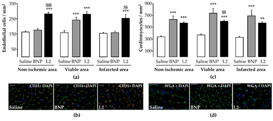 2.5. L2 Enhances Endothelial Cell and Cardiomyocyte Densities upon MI