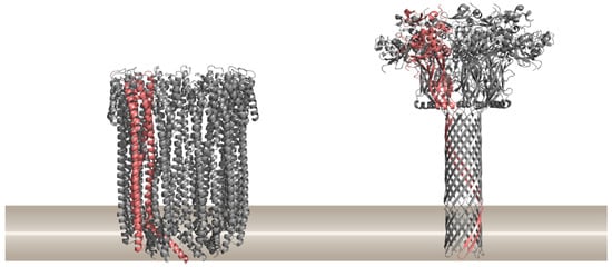 The best characterized and the largest group of PFPs are bacterial PFPs [10], many of which are the key virulence factors of deadly diseases and are also referred to as pore-forming toxins (PFTs). They can act on host cell physiology, tissue integrity, and immune response and cause inflammation that may interfere with antimicrobial treatment [49,50]. PFPs produced by a particular bacterium can form pores in the membrane of other bacteria, plants, animals, or humans, thereby causing disruption of membrane integrity and ion imbalance [29]. To kill other bacteria, some bacteria produce proteins such as colicins [51,52]. To attack eukaryotic cells, some bacteria express CDCs, hemolysins, and aerolysin-like proteins to promote colonization, spread, and survival within the hostile environment of a host organism [29]. In addition to bacteria, PFPs with (potential) toxic function are excreted also by eukaryotic organisms such as fungi, parasites, cnidarians, arachnids, earthworms, or plants, for the purposes of feeding or to defend against their predators. PFPs that are used in defense are also produced by vertebrates, for instance the complement membrane attack complex (MAC) to kill bacteria [17,53], or perforin to kill malignant or virus-infected cells [54], as well as proteins of the Bcl-2 family that cause apoptosis (e.g., Bak and Bax proteins) [55,56].