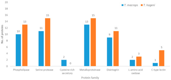 2.1. Proteomics Analysis of T. macrops and T. hageni Venom