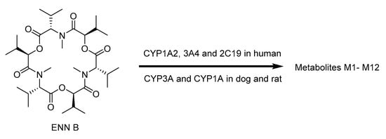 The biotransformation of ENN B [110,111].