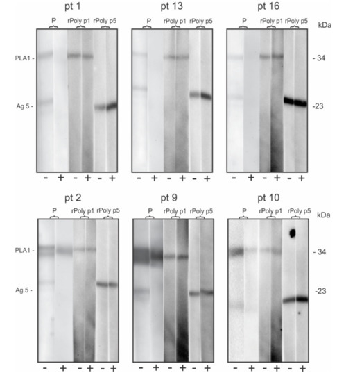| Patient | Hyal. | PLA2 | Api m 6 | PLA1 | Ag 5 | PLA1 | Ag 5 | |