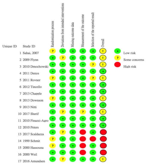 - S Sterne, J.A.C.; Savovic, J.; Page, M.J.; Elbers, R.G.; Blencowe, N.S.; Boutron, I.; Cates, C.J.; Cheng, H.Y.; Corbett, M.S.; Eldridge, S.M.; et al. RoB 2: A revised tool for assessing risk of bias in randomised trials. BMJ 2019, 366, l4898. [Google Scholar] [CrossRef]