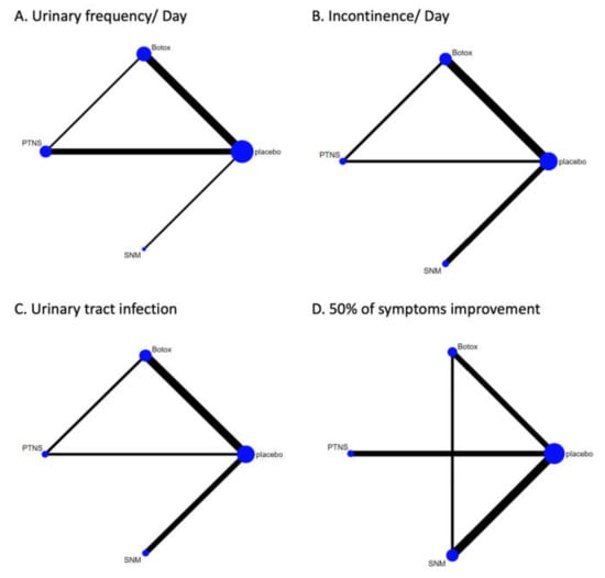 Lo C-W, Wu M-Y, Yang SS-D, Jaw F-S, Chang S-J. Comparing the Efficacy of OnabotulinumtoxinA, Sacral Neuromodulation, and Peripheral Tibial Nerve Stimulation as Third Line Treatment for the Management of Overactive Bladder Symptoms in Adults: Systematic Review and Network Meta-Analysis. Toxins. 2020; 12(2):128. https://doi.org/10.3390/toxins12020128
