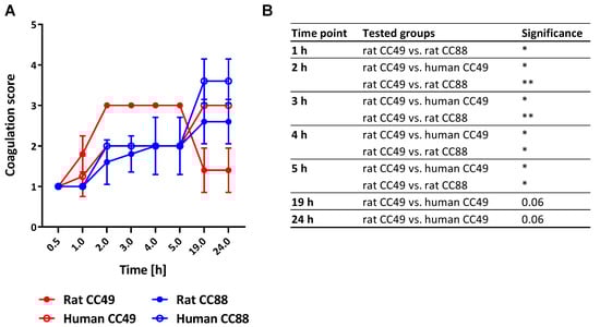 3.6. Rat-derived CC49 Isolates Show Enhanced Procoagulatory Activity on Rat Plasma
