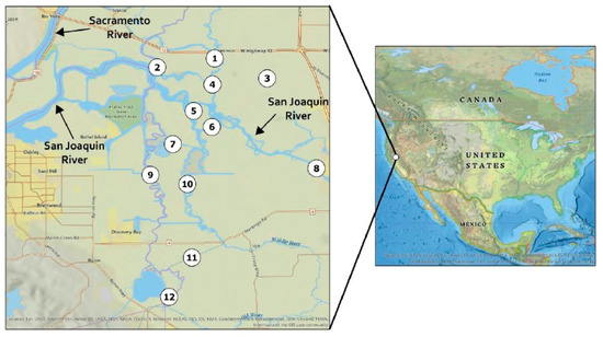 Map of sampling sites in the Sacramento–San Joaquin Delta.