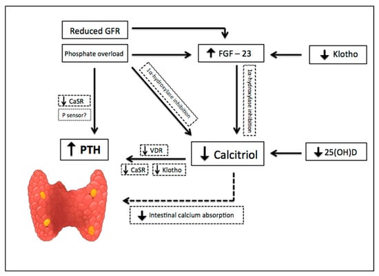 - Silver, J.; Naveh-Many, T. FGF-23 and secondary hyperparathyroidism in chronic kidney disease. Nat. Rev. Nephrol. 2013, 9, 641–649. [Google Scholar] [CrossRef]