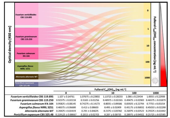 2.2. Impact of Fullerol C60(OH)24 Nanoparticles on the Growth of Foodborne Mycotoxigenic Fungi