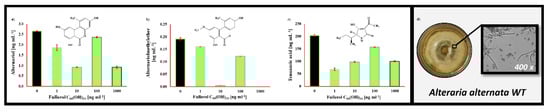 Kovač, T.; Šarkanj, B.; Borišev, I.; Djordjevic, A.; Jović, D.; Lončarić, A.; Babić, J.; Jozinović, A.; Krska, T.; Gangl, J.; et al. Fullerol C60(OH)24 Nanoparticles Affect Secondary Metabolite Profile of Important Foodborne Mycotoxigenic Fungi In Vitro. Toxins 2020, 12, 213. https://doi.org/10.3390/toxins12040213