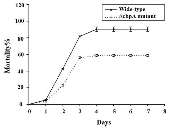 4.17. In Vivo G. mellonella Virulence Assays with HD73 and ∆cbpA Mutant Strains
