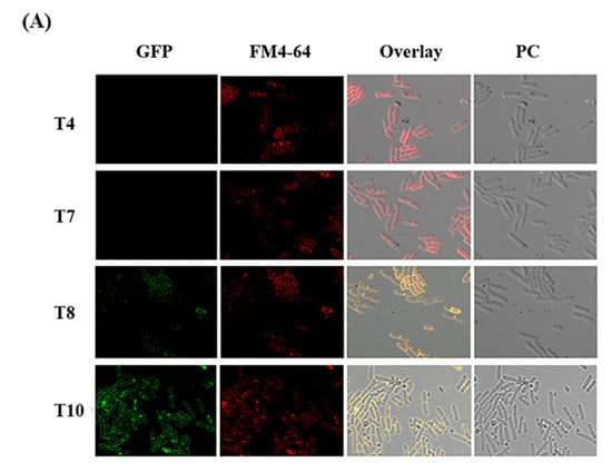 4.8. Laser-Scanning Confocal Microscopy of CBPA-GFP Fusions