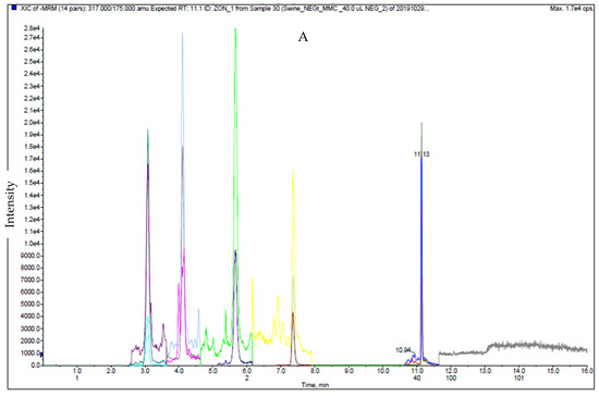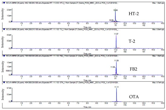 - Wu, A.-B.; Liu, N.; Yang, L.; Deng, Y.; Wang, J.; Song, S.; Lin, S.; Wu, A.; Zhou, Z.; Hou, J. Multi-mycotoxin analysis of animal feed and animal-derived food using LC–MS/MS system with timed and highly selective reaction monitoring. Anal. Bioanal. Chem. 2015, 407, 7359–7368. [Google Scholar] [CrossRef]