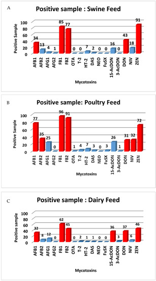 2.5. Occurrence of the Mycotoxins in Animal Feed