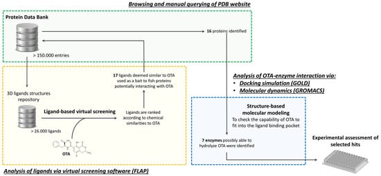 In the structure-based molecular modeling, a docking study followed by molecular dynamic simulation were applied on the most promising OTA hydrolyzing enzymes that were identified by VSs to investigate the OTA-enzyme interaction from a molecular/atomistic level (Figure 2).