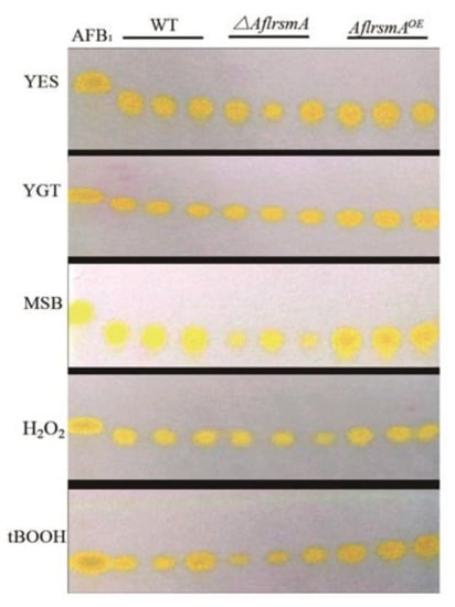 2.4. AflRsmA Involved in AFB1 Production is Oxidative Stress Related
