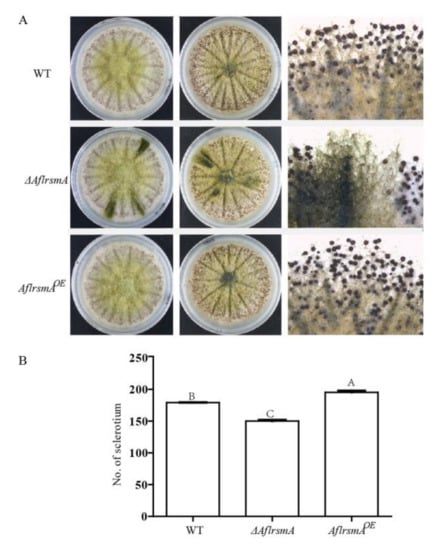 2.5. AflRsmA Positively Regulates Sclerotia Formation
