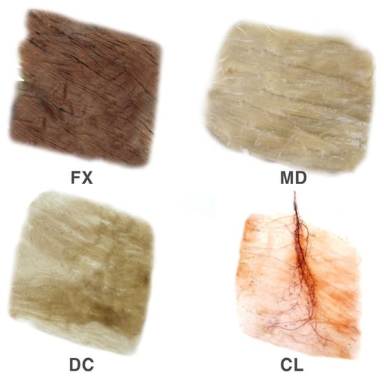 The rhomboid major muscle underwent modified Sihler’s method. The method consists of stages of fixation (FX), maceration and depigmentation (MD), decalcification (DC), staining, and clearing (CL).