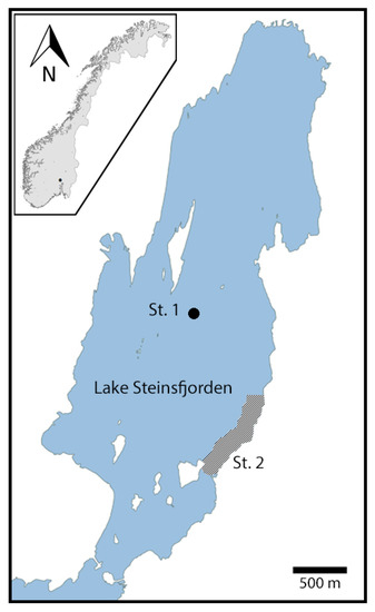 - Ballot, A. Overvåking av Steinsfjorden 2016; NIVA: Oslo, Norway, 2016; p. 14. Available online: https://www.hole.kommune.no/getfile.php/3882432.2423.napbsujuwmwlnq/STEINSFJORDEN_NOTAT_2016.pdf (accessed on 13 November 2019).