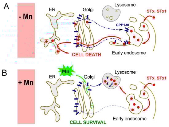 - Mukhopadhyay, S.; Linstedt, A. Manganese Blocks Intracellular Trafficking of Shiga Toxin and Protects Against Shiga Toxicosis. Science 2012, 335, 332–335. [Google Scholar] [CrossRef]