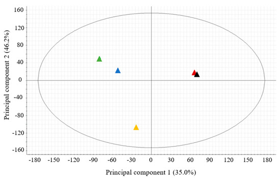 The metabolome similarities of all CEs were evaluated by a principal components analysis (PCA) and a fold change analysis that consider each feature (retention time/mass-to-charge ratio (m/z) pairs). The sample grouping as the result of PCA showed significant differences in chemical composition of the CEs of the three species of mushroom within the first two principal components (PC1 and PC2), which explains 46.2% and 35% respectively, of the total variance (Figure 4). Interestingly, only weak intraspecific differences were observed in the PCA analysis of CEs from As-s and As-P, while in L. edodes, the compositions of the Le-S and Le-P were found to be different (Figure 4).
