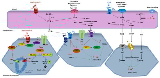- Vanhoutte, P.M.; Feletou, M.; Taddei, S. Endothelium-dependent contractions in hypertension. Br. J. Pharmacol. 2005, 144, 449–458. [Google Scholar] [CrossRef]