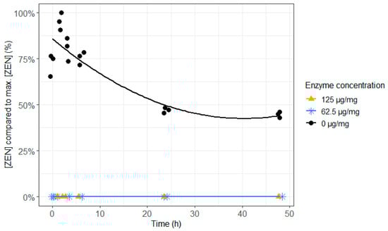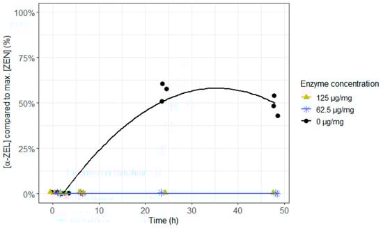 - Fruhauf, S.; Novak, B.; Nagl, V.; Hackl, M.; Hartinger, D.; Rainer, V.; Labudov, S.; Adam, G.; Aleschko, M.; Moll, W.; et al. Biotransformation of the mycotoxin zearalenone to its metabolites hydrolyzed aearalenone (HZEN) and decarboxylated hydrolyzed zearalenone (DHZEN) diminishes its estrogenicity in vitro and in vivo. Toxins 2019, 11, 481. [Google Scholar] [CrossRef]