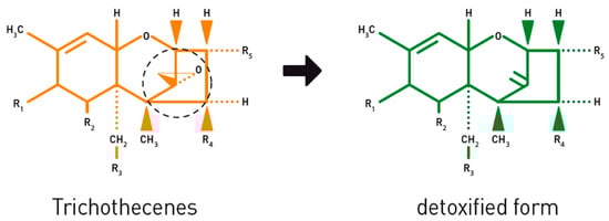 - Fuchs, E.; Binder, E.M.; Heidler, D.; Krska, R. Structural characterization of metabolites after the microbial degradation of type A trichothecenes by the bacterial strain BBSH 797. Food Addit. Contam. 2002, 19, 379–386. [Google Scholar] [CrossRef] [PubMed]