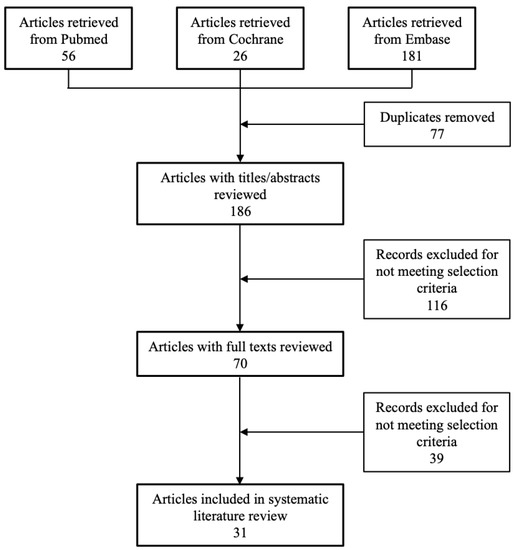 Two reviewers independently extracted information from the articles, first by reviewing titles and abstracts and then by reviewing full texts. Relevant information regarding (i) study type, (ii) number of patients and type of interventions used in the study, and (iii) outcomes and parameters utilized or outcome assessment was recorded. The reviewers rated the level of evidence and assessed bias using the Grading of Recommendations, Assessment, Development and Evaluations (GRADE) approach (Supplementary Materials, Table S2) [6].