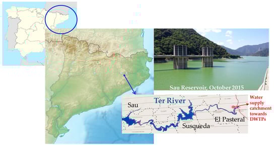 The Ter River is 167 km long and originates in the middle of the Catalan Pyrenees, leading to the Mediterranean Sea. The system of reservoirs of Sau-Susqueda-El Pasteral is located in the Ter River basin (Figure 4) and is devoted mainly to the urban supply, regulation of the Ter River, irrigation and production of hydroelectric energy. In fact, it is one of the main supply systems for the metropolitan area of cities such as Barcelona and Girona. The whole population it is supplied to is about 5 million inhabitants.