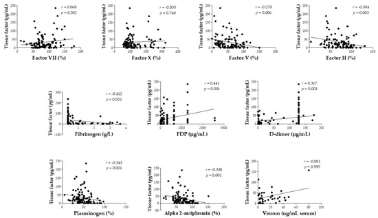 - Yamashita, K.M.; Alves, A.F.; Barbaro, K.C.; Santoro, M.L. Bothrops jararaca Venom Metalloproteinases Are Essential for Coagulopathy and Increase Plasma Tissue Factor Levels during Envenomation. PLoS Negl. Trop. Dis. 2014, 8. [Google Scholar] [CrossRef] [PubMed]