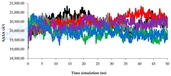 2.2.3. Solvent Accessible Surface Area (SASA) Analysis